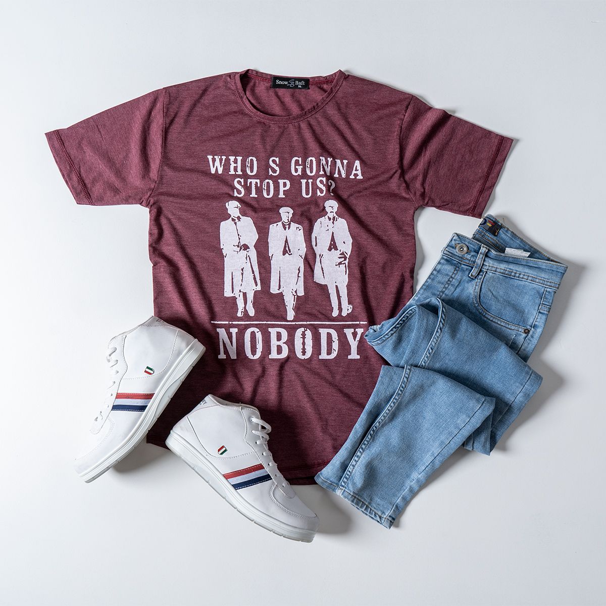تيشرت NOBODY مردانه زرشکی مدل Montez