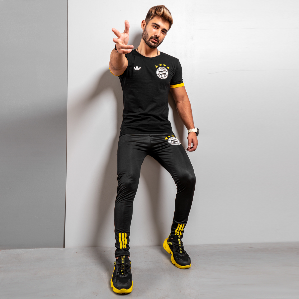 علاقهمندان باشگاهها و تیمهای مختلف ورزشی تمایل دارند پوشاکی با طرح و لوگوی همان باشگاه را بپوشند. از طرفی پوشیدن تیشرت به تنهایی یا شلوار به تنهایی، چندان مورد رضایت نیست؛ به همین دلیل این ست به صورت تیشرت و شلوار ارائه شده و طرح و لوگوی تیم فوتبال محبوب بایرن مونیخ را در خود دارد.